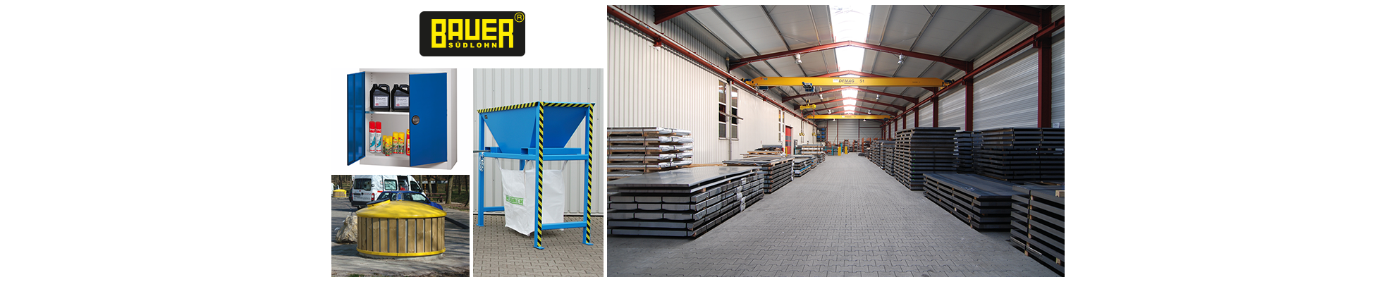 La société BAUER GmbH développe, produit et distribue dans le monde entier des accessoires pour chariots élévateurs, des équipements de protection de l'environnement ainsi que des conteneurs pour matières recyclables et déchets. fondée en 1966 par Heinz Dieter Bauer, la société BAUER GmbH est aujourd'hui l'un des principaux fabricants européens. Des collaborateurs qualifiés et l'utilisation des technologies de fabrication les plus modernes garantissent des produits d'un niveau de sécurité et de qualité très élevé. Le système de gestion de la qualité certifié depuis 1993 selon la norme DIN EN ISO 9001 garantit une qualité élevée et constante « made by BAUER ».